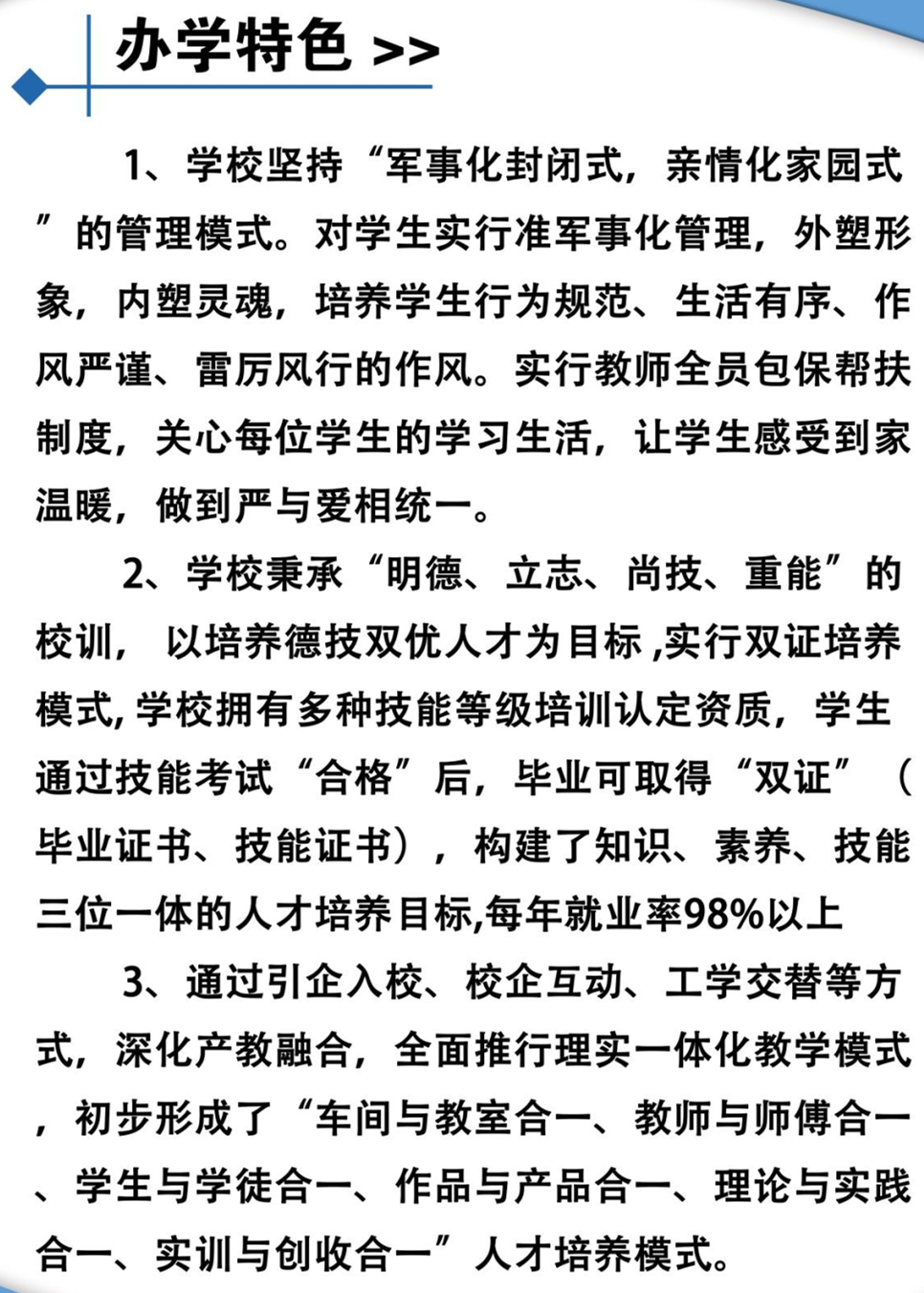 办学特色: