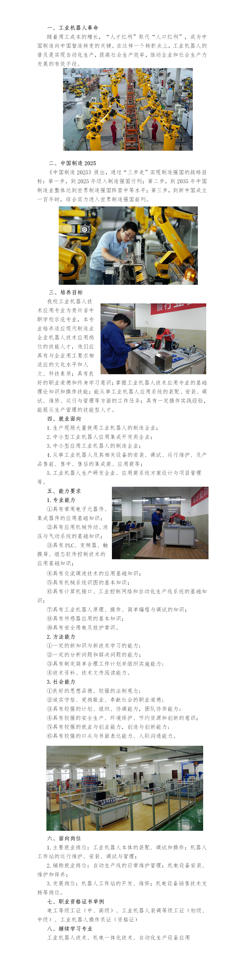 - 贵州职校工业机器人专业